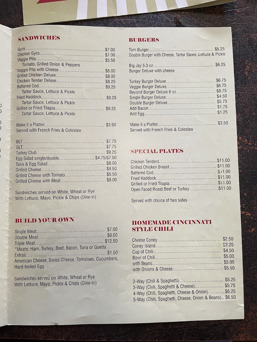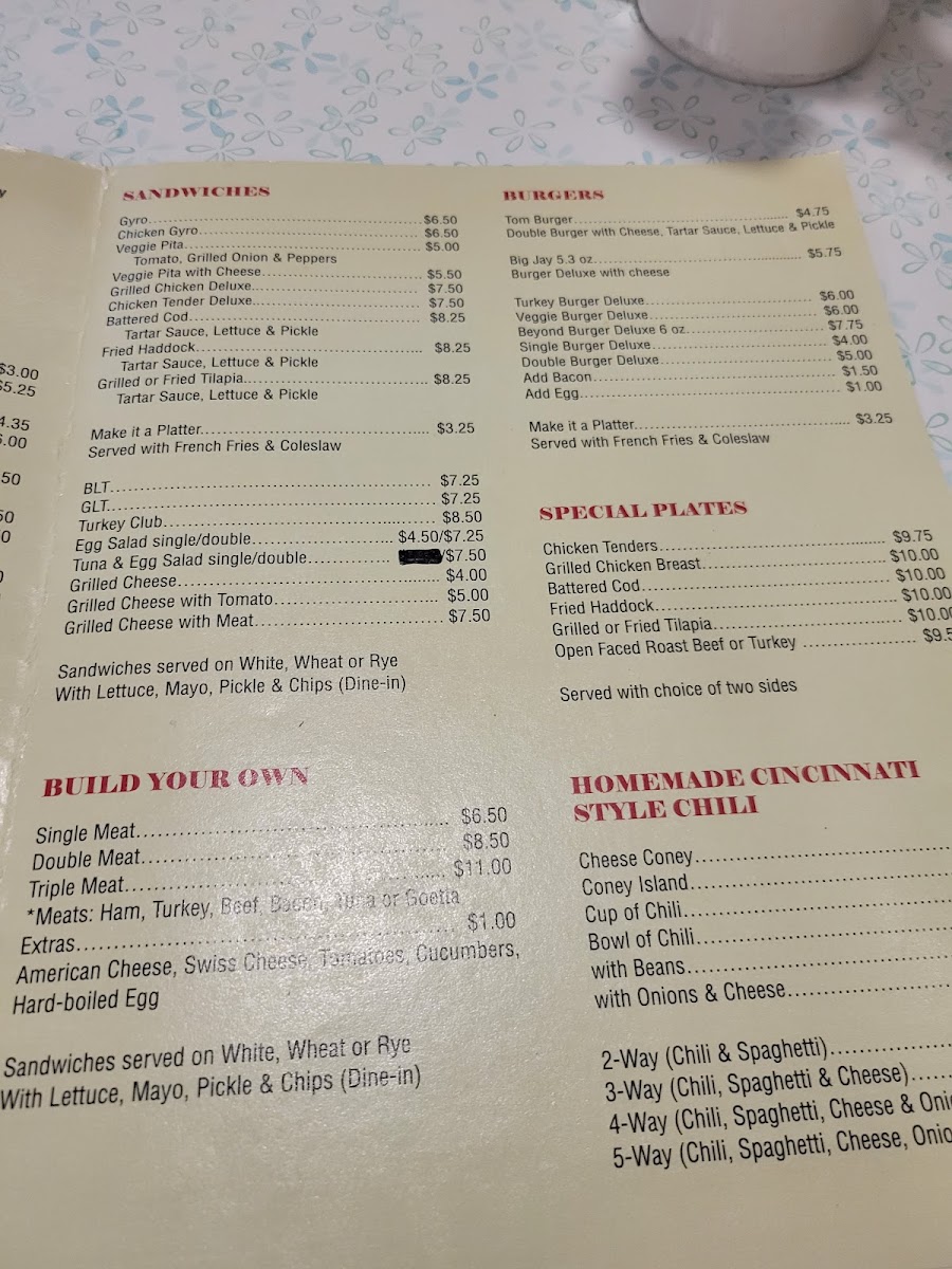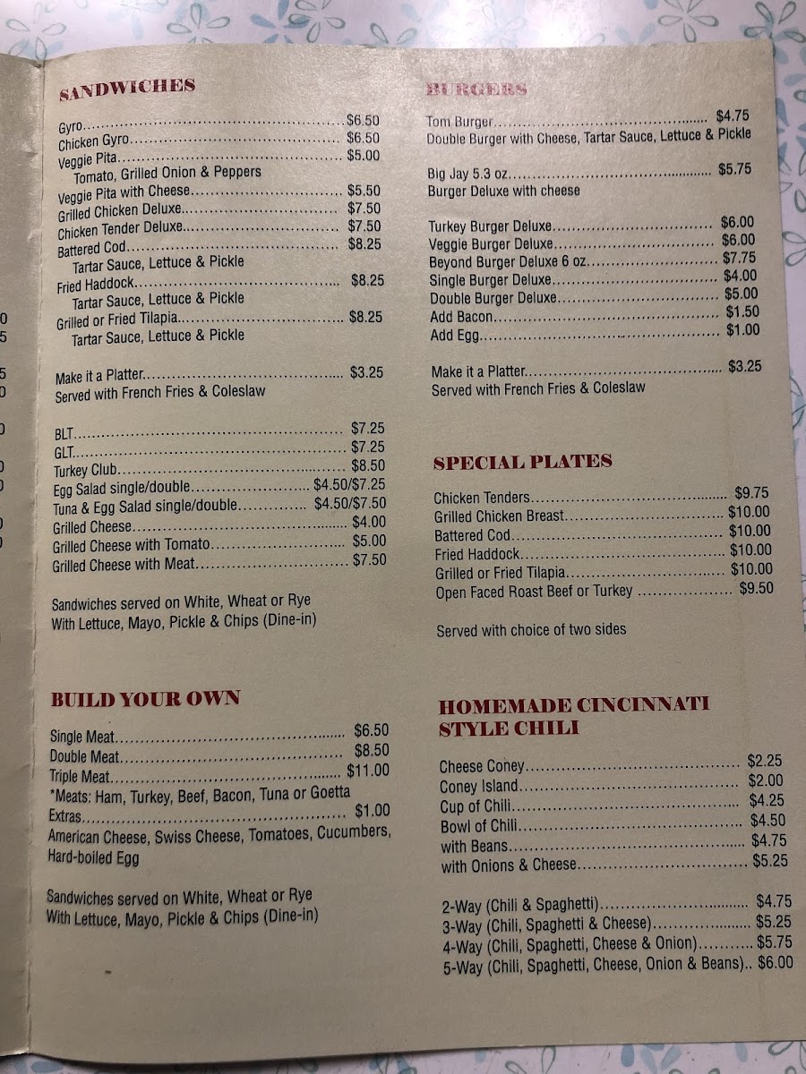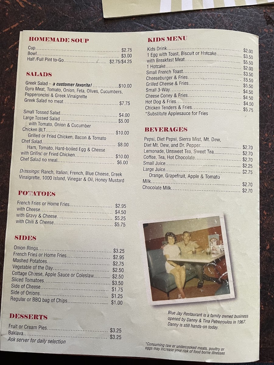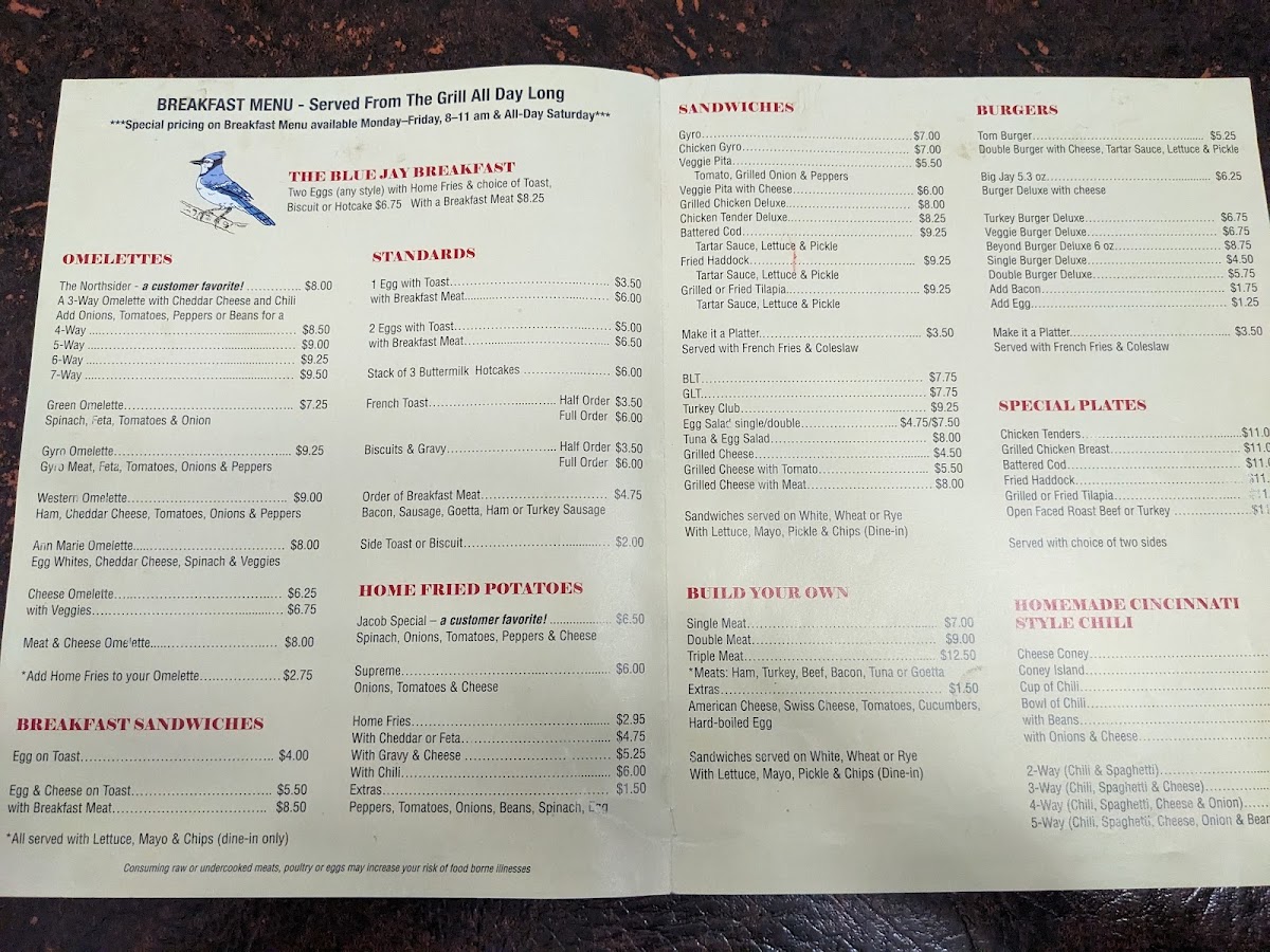 Blue Jay Restaurant Menu
